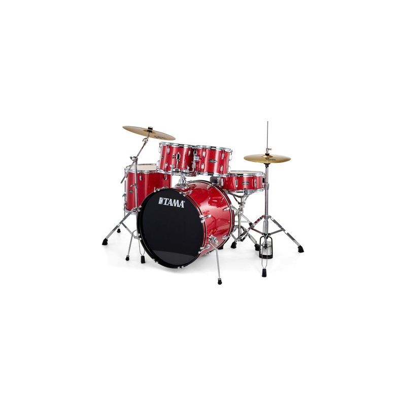 El nuevo kit STAGESTAR Viene con soporte de tom Omni-ball, así como hardware de doble refuerzo para una mayor estabilidad. Madera: Álamo (Poplar) Bombo de 22''x16´´, Toms de 10''x8'' y 12´´x9, Tom de piso de 16´´x15, Tarola de 14 ''x5,5 Hardware: Soporte doble para toms, Atril de hi-hat, Pedal para bombo, Atril para tarola, Atril para platillos con boom, Atril para platillos recto, asiento para baterista.