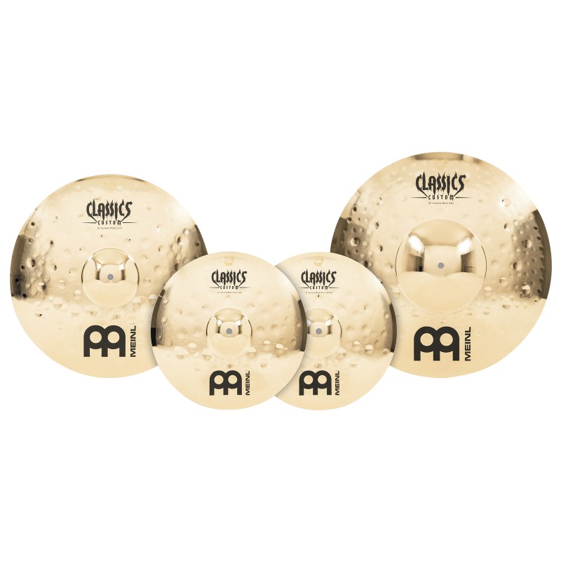 Paquete de Platillos Meinl Classics Custom Extreme Metal. Modelo: IPMEICCEM480.Incluye Hi-Hat de 14" pulgadas, Crash de 18" pulgadas y Ride de 20" pulgadas. Cuenta con un sonido de carácter agresivo. Están fabricados con aleación de bronce B12 y martillados por computadora.